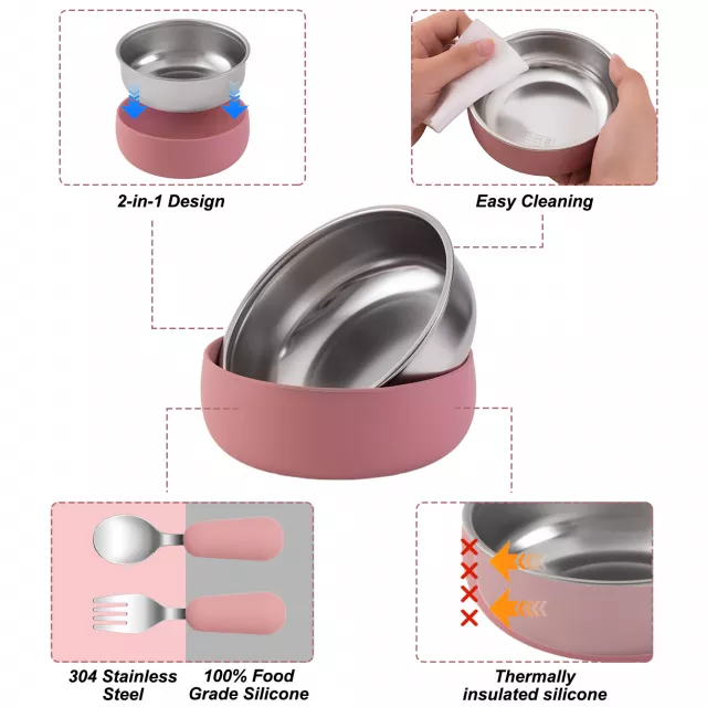 I never thought I'd get excited over tableware until I became a mom. This feeding set is just phenomenal! It's easy to clean (a godsend when you're running after a toddler), sturdy yet soft because of the silicone and stainless steel combo, and being BPA-free means no harmful chemicals near my little one. Meal times have become so much less stressful now!