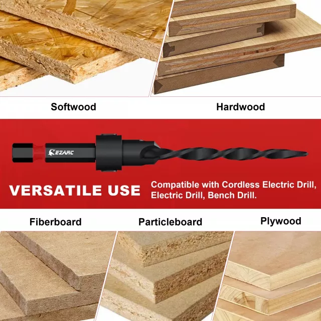 This set is ideal for any woodworking task that demands clean, flush screw installations. From crafting detailed cabinetry to securing frames and panels, it ensures professional results with minimal effort. Use it during furniture assembly, shelving installs, or any project where screw heads need to sit perfectly below the surface.
