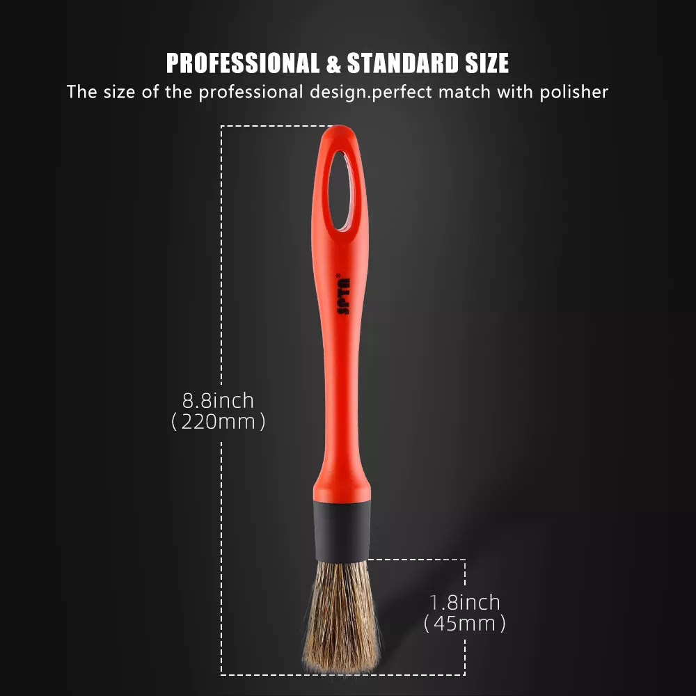 Each brush in this set features a mix of natural boar hair, microfiber, and synthetic fiber, giving you a complete arsenal to handle every detailing job. With densely packed bristles and a sturdy PP handle, they’re gentle on delicate surfaces but tough enough to remove stubborn debris. The ergonomic 8.8-inch handle length provides a firm grip for better control, while the 1.8-inch brush heads make reaching narrow spaces a breeze.
