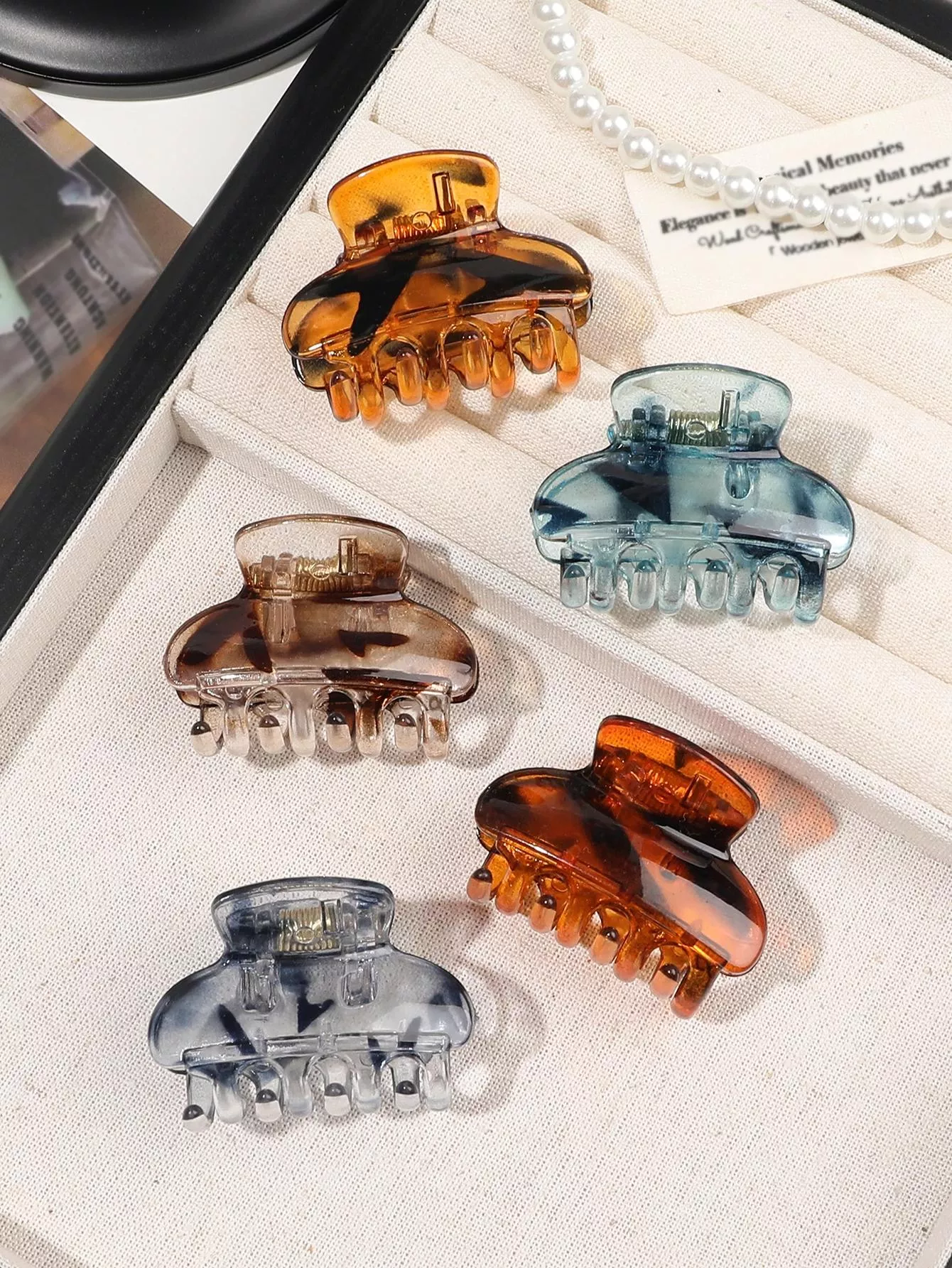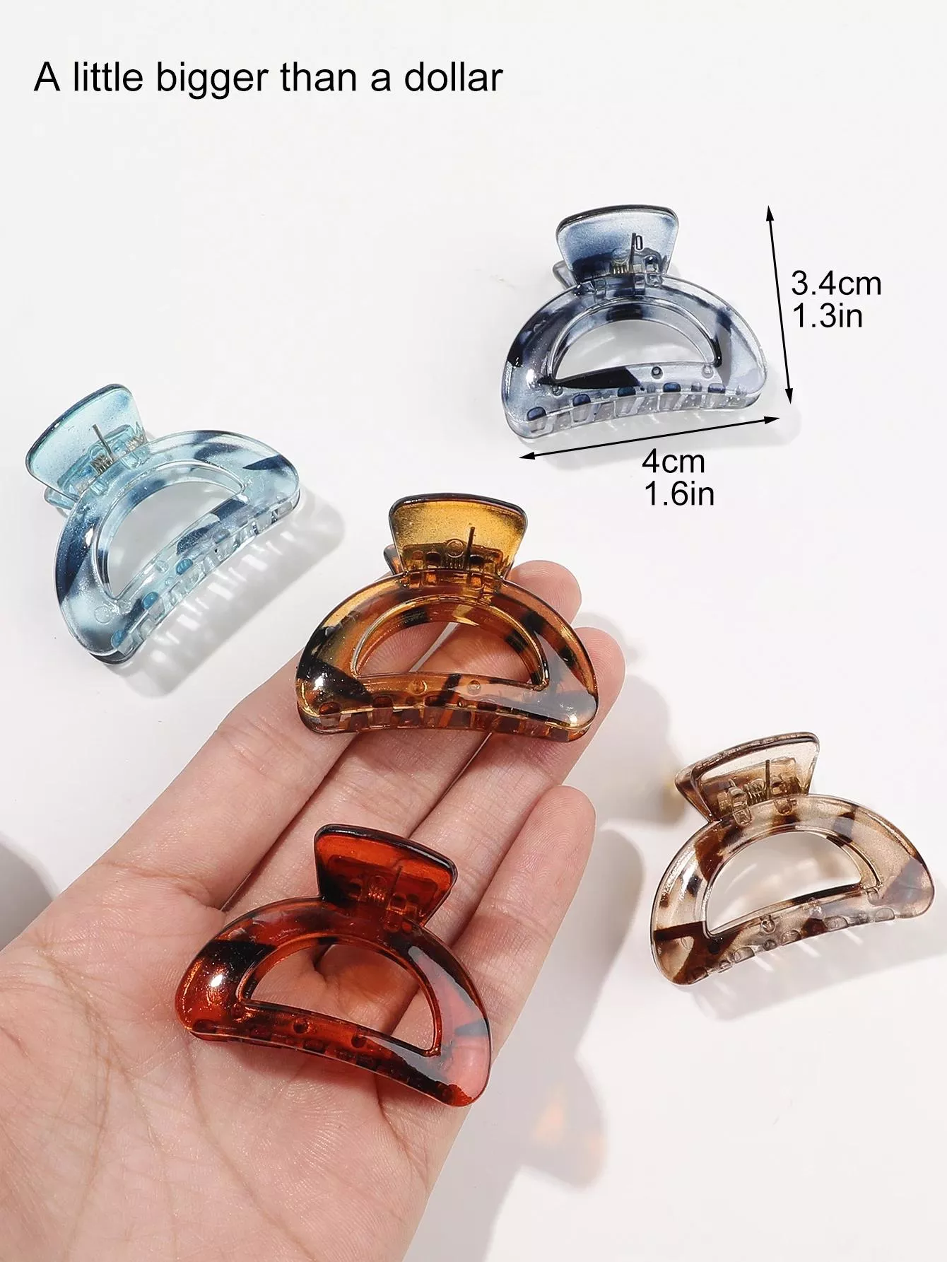 Upgrade your hair game with this set of 5 elegant hair claw clips, designed to add a touch of style and functionality to your daily look. Featuring a trendy tortoise shell and leopard print pattern, these clips come in five versatile colors that effortlessly complement any outfit and hair color. Whether you’re aiming for a sleek bun, a casual half-up hairstyle, or a quick hair fix on the go, these claw clips hold your hair securely while enhancing your natural beauty.