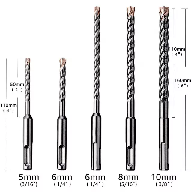 Equipped with precision-engineered carbide tips—two 2-cutter and three 4-cutter—each bit offers optimized cutting power and durability. These bits are ideal for tasks that require clean holes and fast dust removal, thanks to their wide U-shaped flute design. Perfect for renovation projects, heavy-duty installations, or industrial tasks where power and precision are essential.