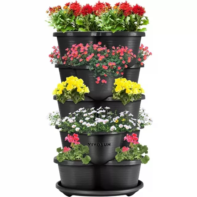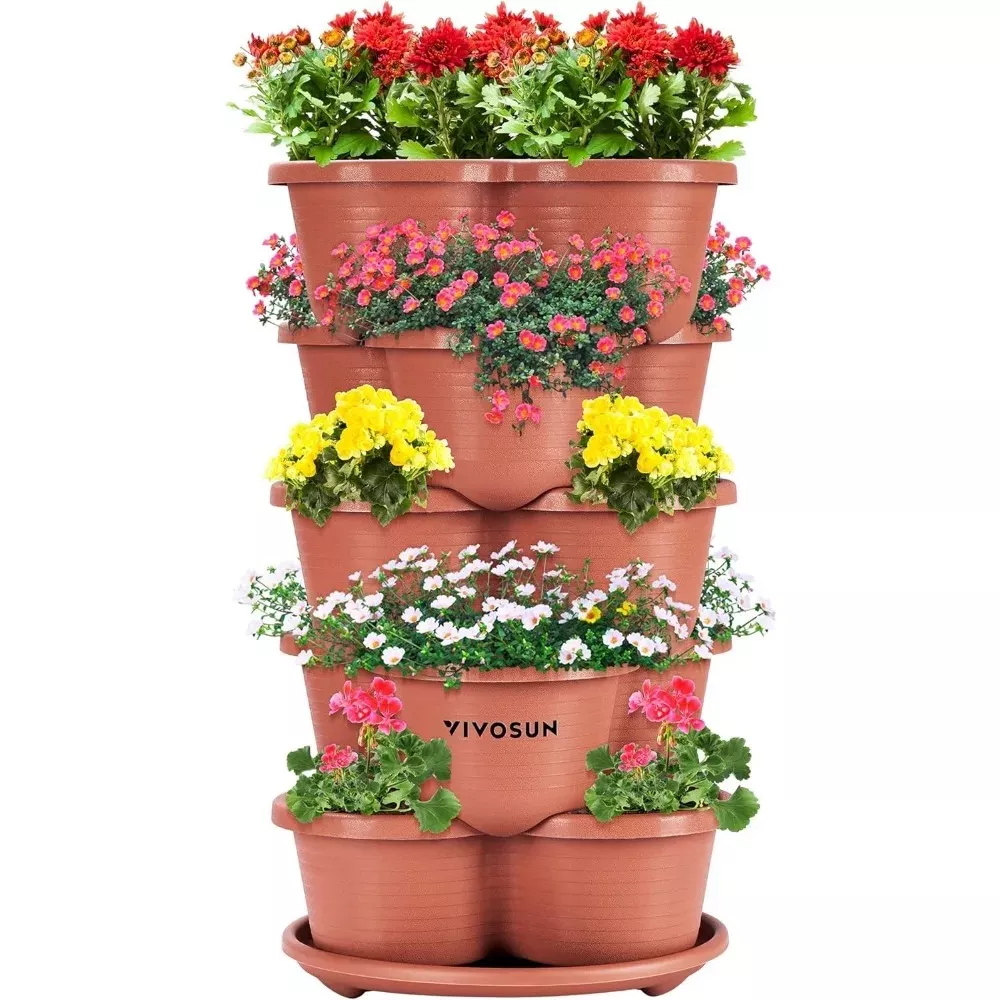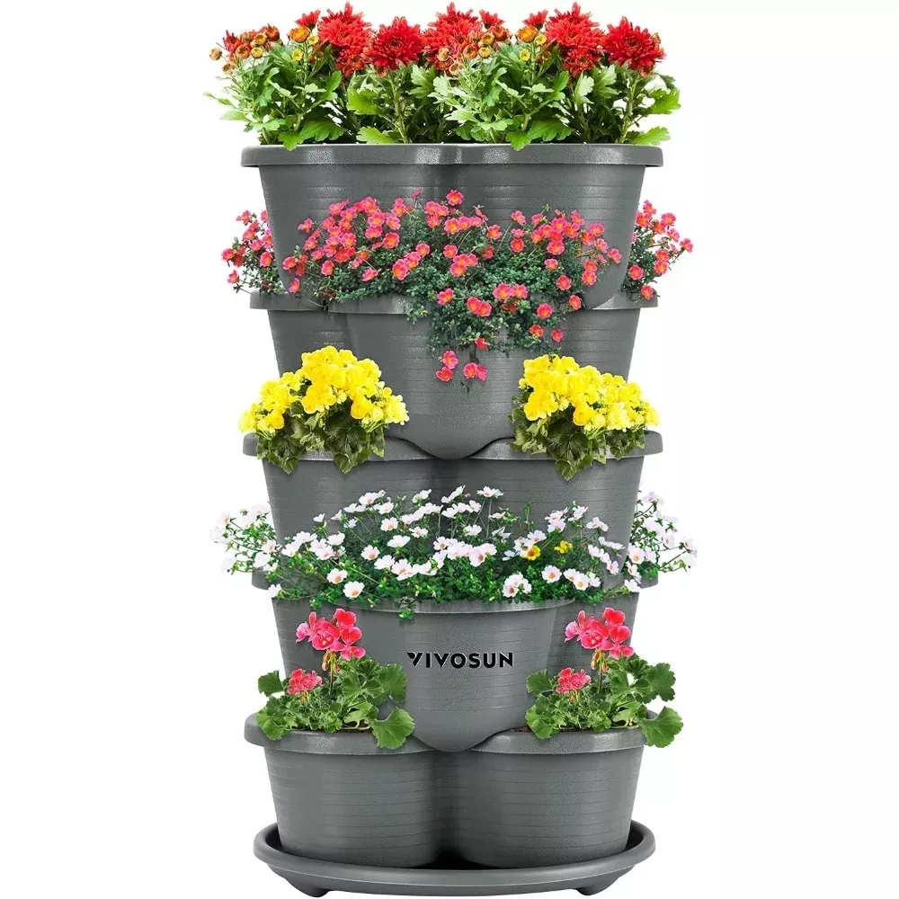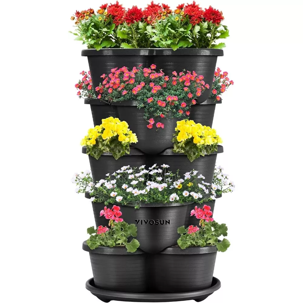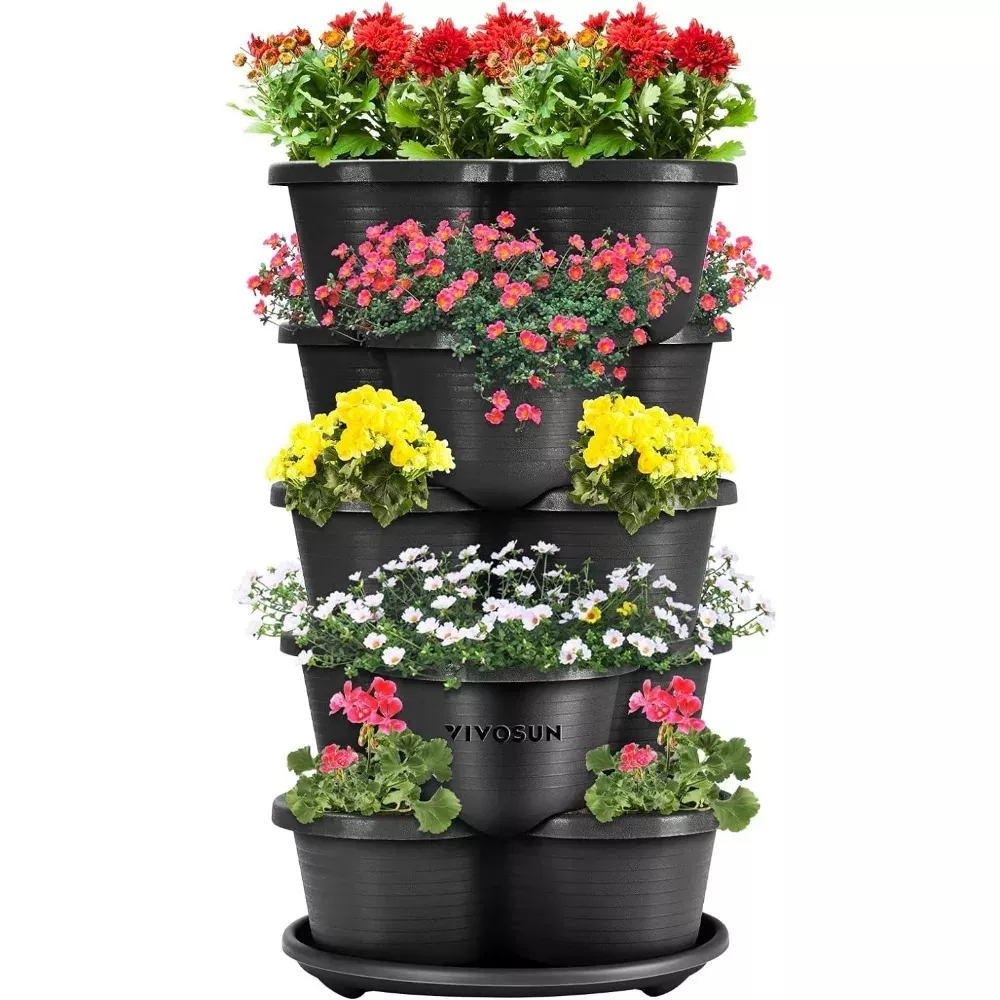 Crafted from thick, high-quality polypropylene (PP), this planter is made to last. It resists fading under the sun, won’t crack even during summer heat, and can be used season after season without losing its charm. The stackable design allows you to customize it by using 2, 3, 4, or all 5 tiers depending on your space and plant needs. You can set it up on a sturdy pole, or hang it with chains for a vertical garden that’s as stylish as it is functional.