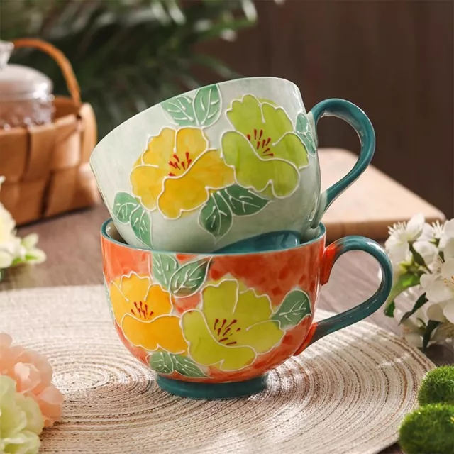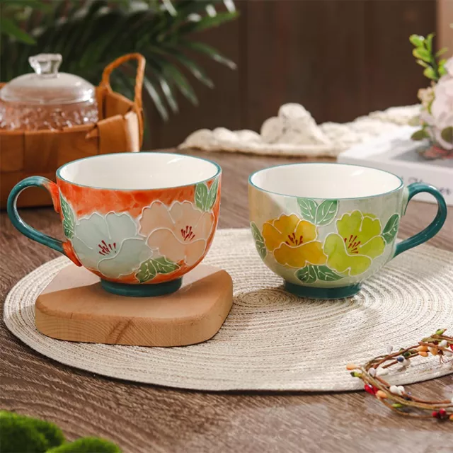 500ml Hand-Painted Ceramic Mug with Handle – Floral Tea & Coffee Cup