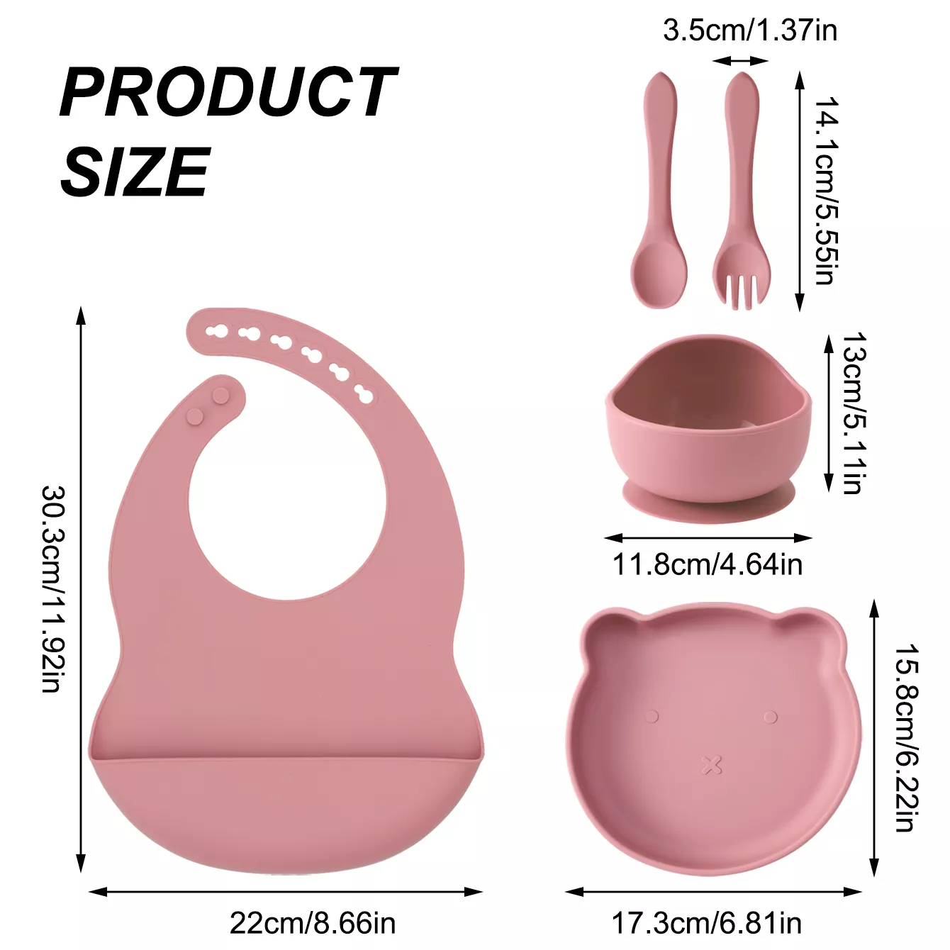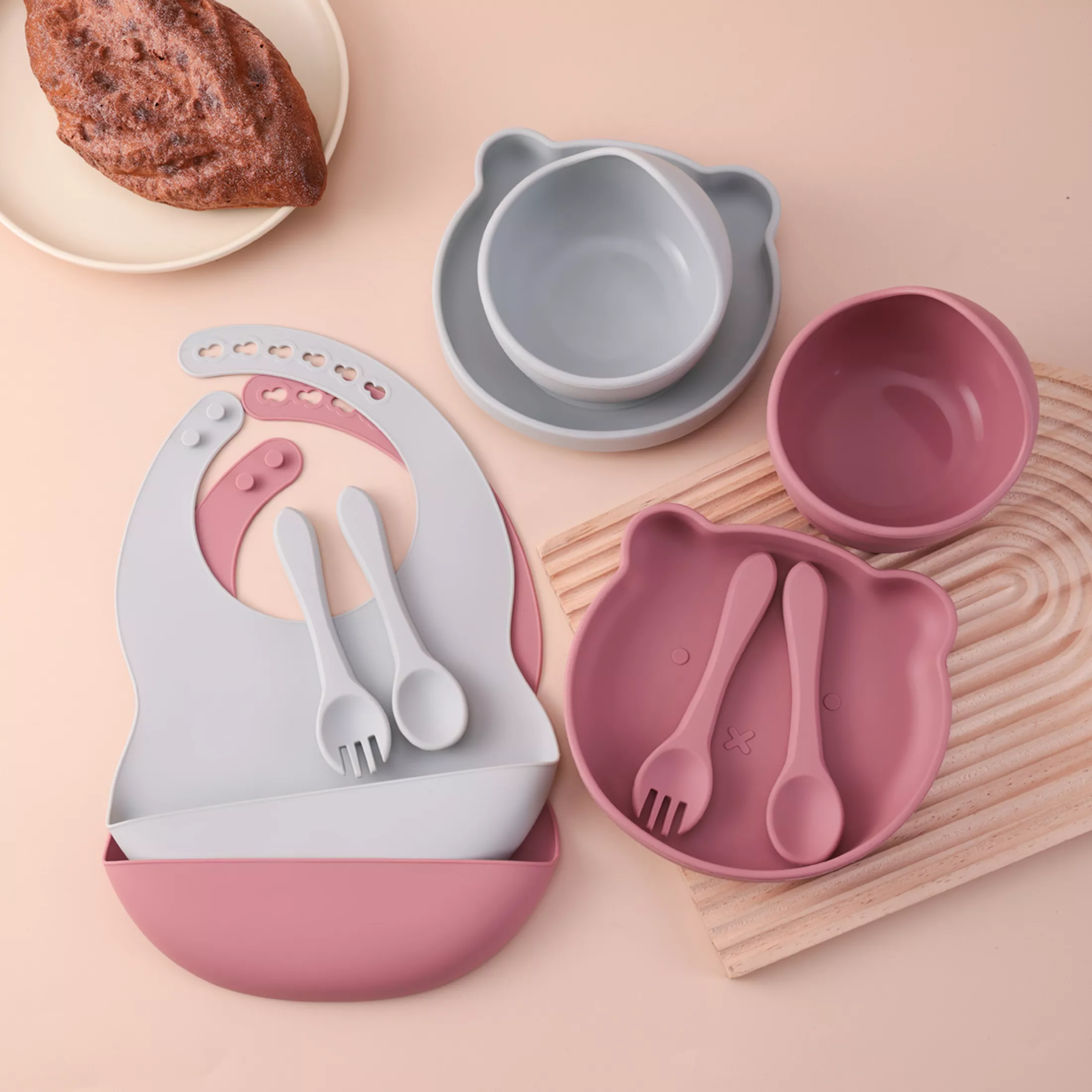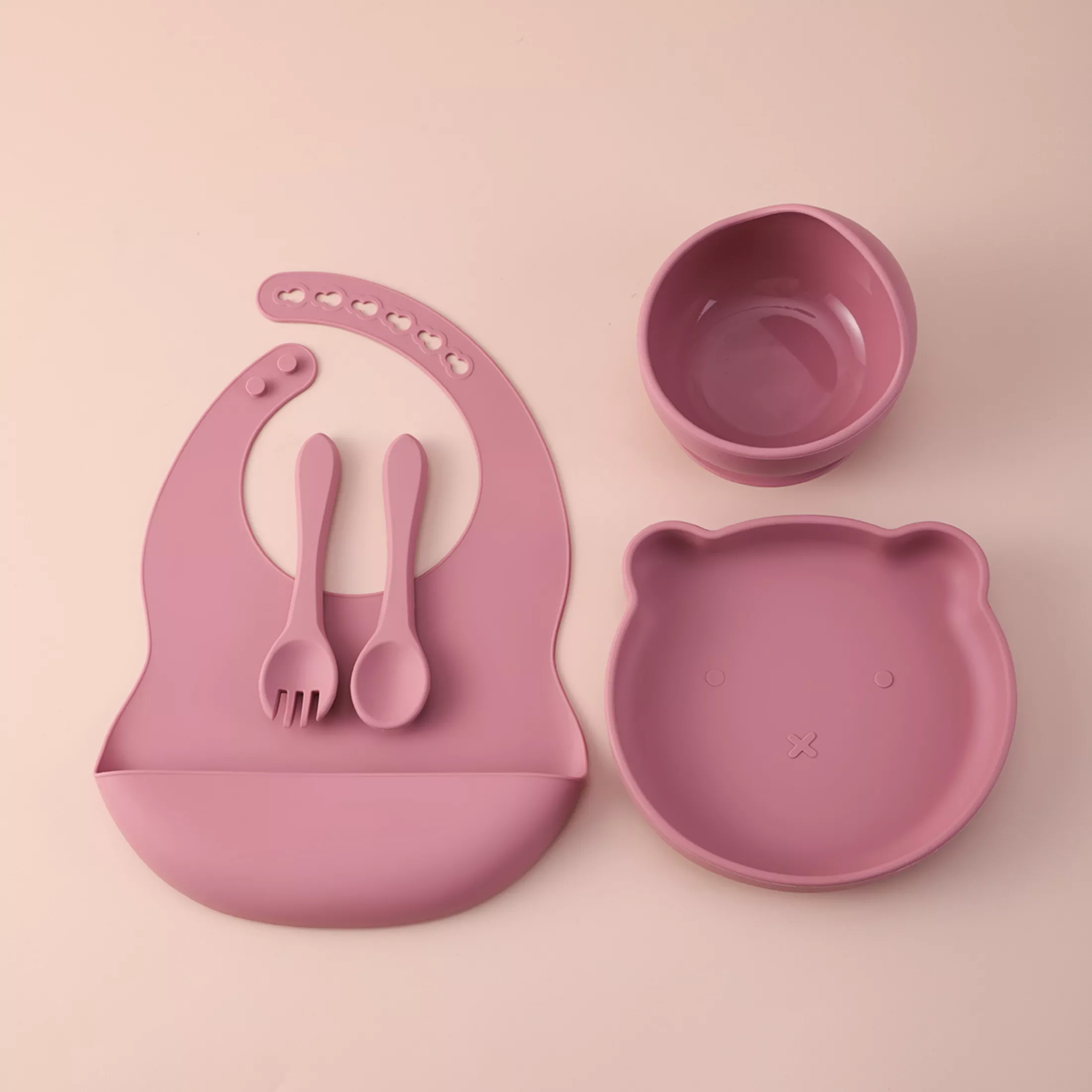 I've been using this silicone feeding set for a couple of weeks now, and it's honestly one of the best purchases I've made. The bib is perfect for catching all those spills and crumbs that usually end up on my baby's clothes or floor. The plate and bowl have a suction feature which means no more tipped over meals! And the bear design? Just adorable! It adds an element of fun to meal times. Plus, the training utensils are just right for my little one's hands as they learn to feed themselves.