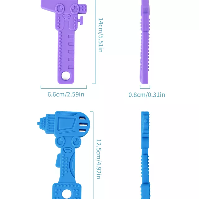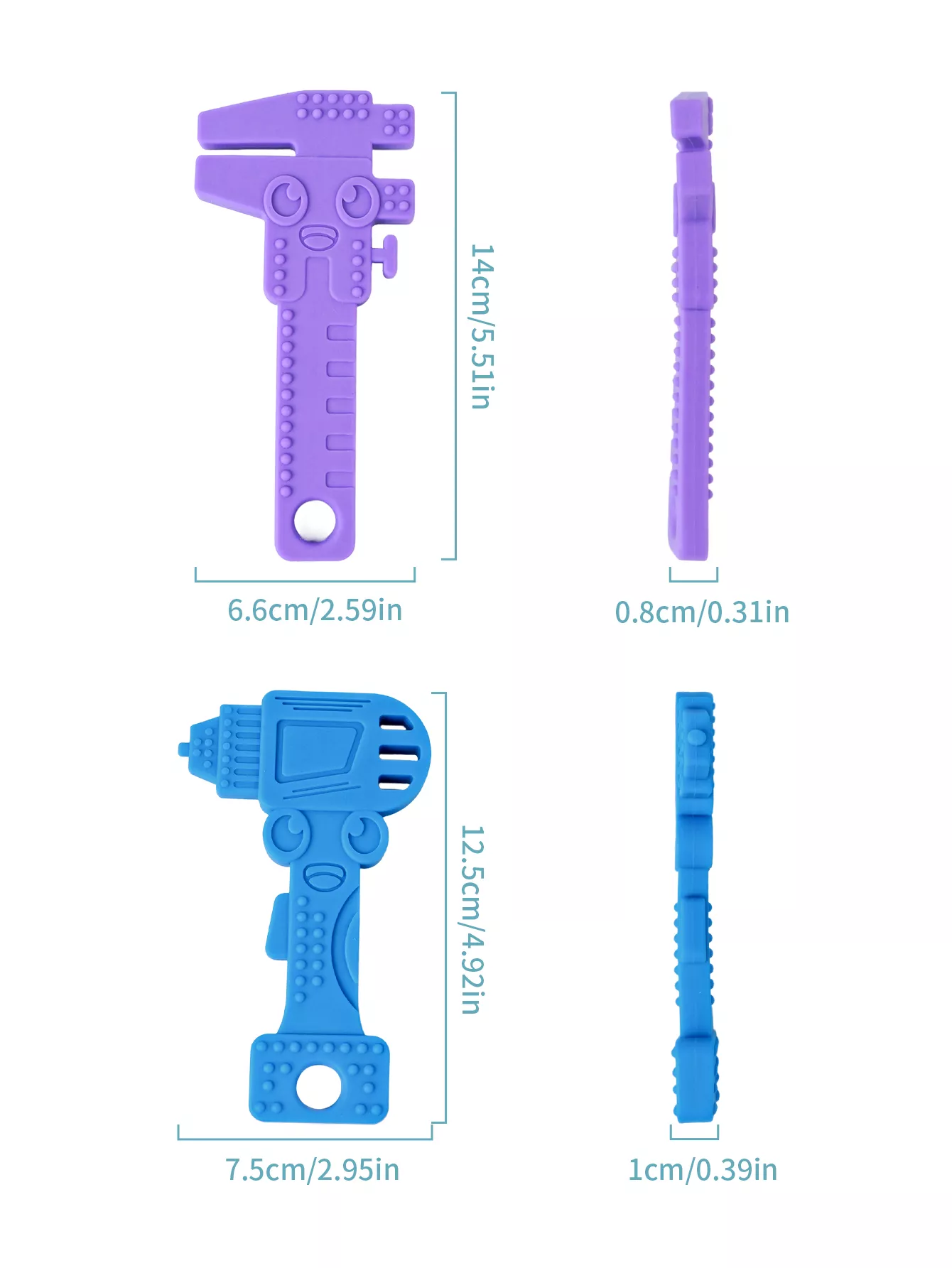 Crafted from high-quality food-grade silicone, these teethers are not only gentle on sore gums but also completely free from BPA, PVC, phthalates, latex, and nitrosamines. Their unique wrench design adds a playful element that encourages sensory play and helps develop fine motor skills. The long, slim shape is easy for tiny fingers to grasp and maneuver, making it ideal for self-soothing anytime, anywhere. Perfectly safe for babies from 3 months and up, this teether is suitable throughout the entire teething phase and even into toddlerhood.