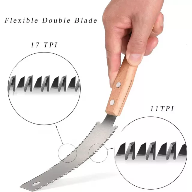 This fine-toothed, double-sided saw is crafted from high-quality stainless steel, ensuring durability and long-lasting performance. At just 75g, it’s incredibly lightweight, making it easy to maneuver and ideal for one-handed use. One side features fine teeth for smooth, detailed cuts, while the other side offers a slightly more aggressive bite for faster sawing.
