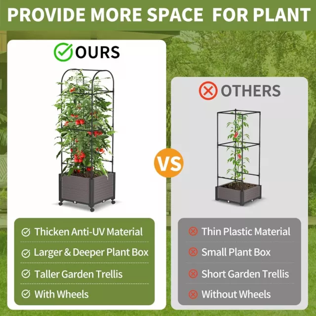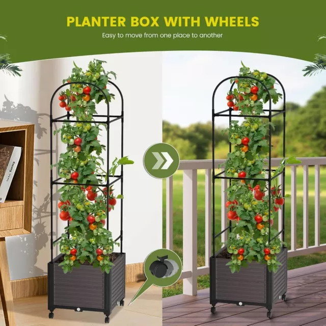 Bring your garden to life with this beautifully designed 61” Raised Garden Bed Planter Box with Trellis. Whether you’re a seasoned gardener or just getting started, this planter makes growing climbing plants, flowers, and vegetables easier and more enjoyable. With a built-in trellis and self-watering system, it’s made to simplify gardening and elevate your outdoor décor at the same time. Perfect for patios, balconies, backyards, or even small spaces, this planter offers both form and function in one clever design.