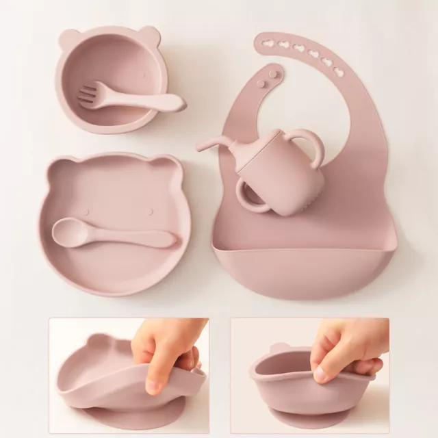 Turn every meal into a joyful experience for your little one with this adorable and practical 6PCS Silicone Baby Feeding Set. Thoughtfully designed for babies and toddlers, this complete dinnerware set includes everything your child needs for independent eating — an adjustable silicone bib, a bear-shaped bowl and plate, a soft-handled cup, and safe, gentle utensils. Made from food-grade silicone, every piece is BPA-free, PVC-free, latex-free, and phthalate-free, ensuring a worry-free mealtime for parents and a mess-free one for babies.