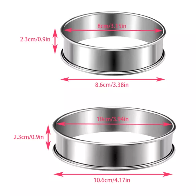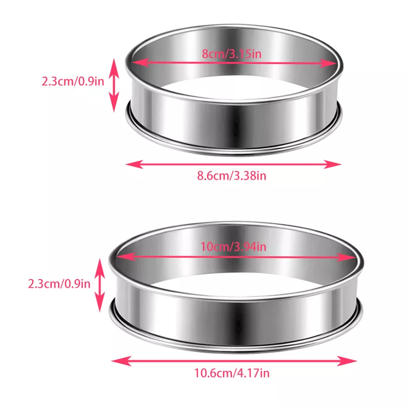 Each ring in the set measures either 3.1 inches or 3.9 inches in diameter, ideal for crafting everything from classic muffins and mini cakes to cookies, egg tarts, biscuits, and even homemade burger patties. Their double-rolled edges ensure durability and safety, while the stackable design saves space in your kitchen drawers. These molds are easy to clean and reuse, making them an eco-friendly alternative to disposable liners.