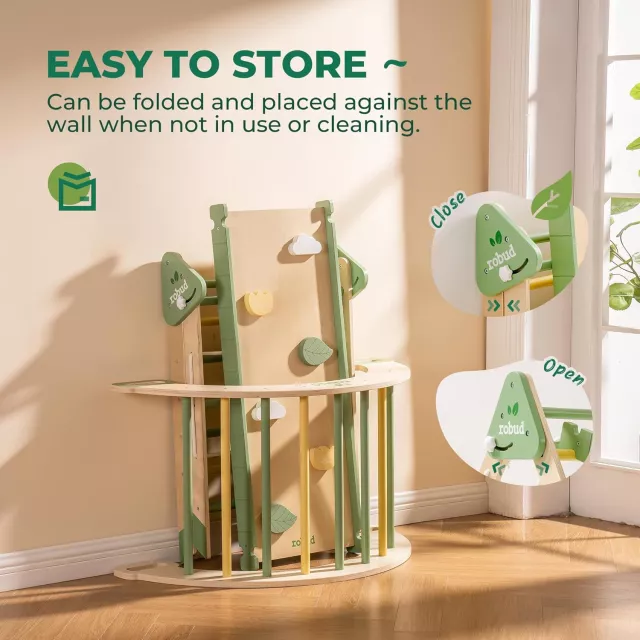 Easy to assemble with clear instructions, the 7-in-1 Foldable Wooden Climbing Set is ready to transform your living room, playroom, or basement into an exciting play zone. Let your kids climb, slide, crawl, and imagine—all while developing key skills through movement and fun.