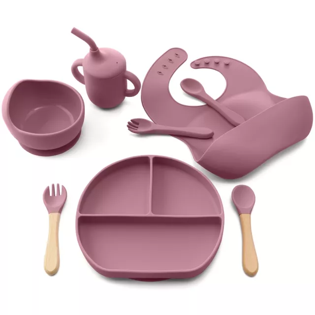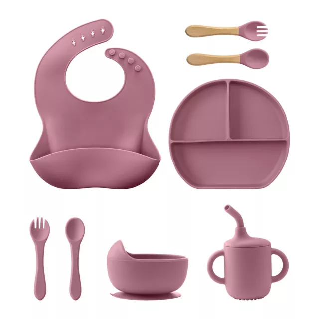 8-Piece Silicone Baby Feeding Set with Suction Bowl, Bib, Spoon, Fork & Cup