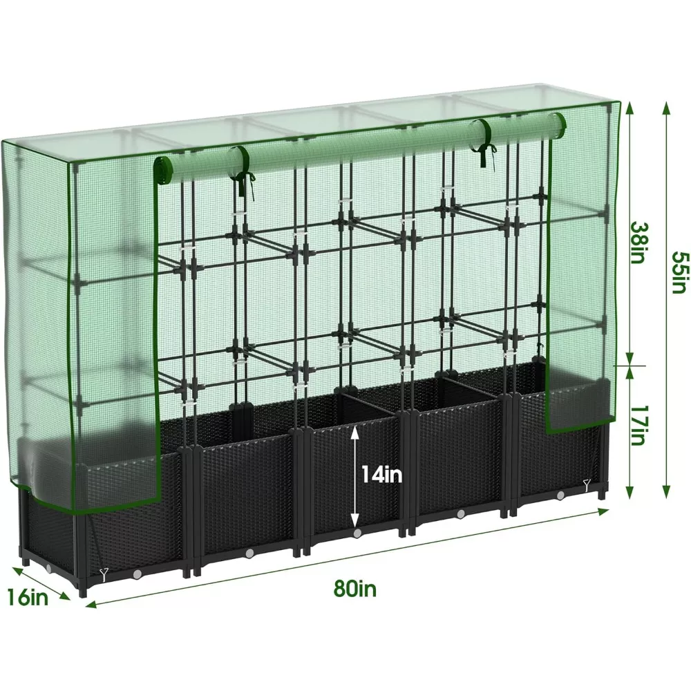 Transform your backyard, patio, or indoor space into a thriving garden with this all-in-one 80” x 16” x 55.5” Plastic Raised Garden Bed. Designed for serious gardeners and green-thumbed beginners alike, this modern raised bed comes complete with a durable greenhouse cover, smart watering system, and vertical trellis — giving your plants the care and space they need to grow strong and healthy.