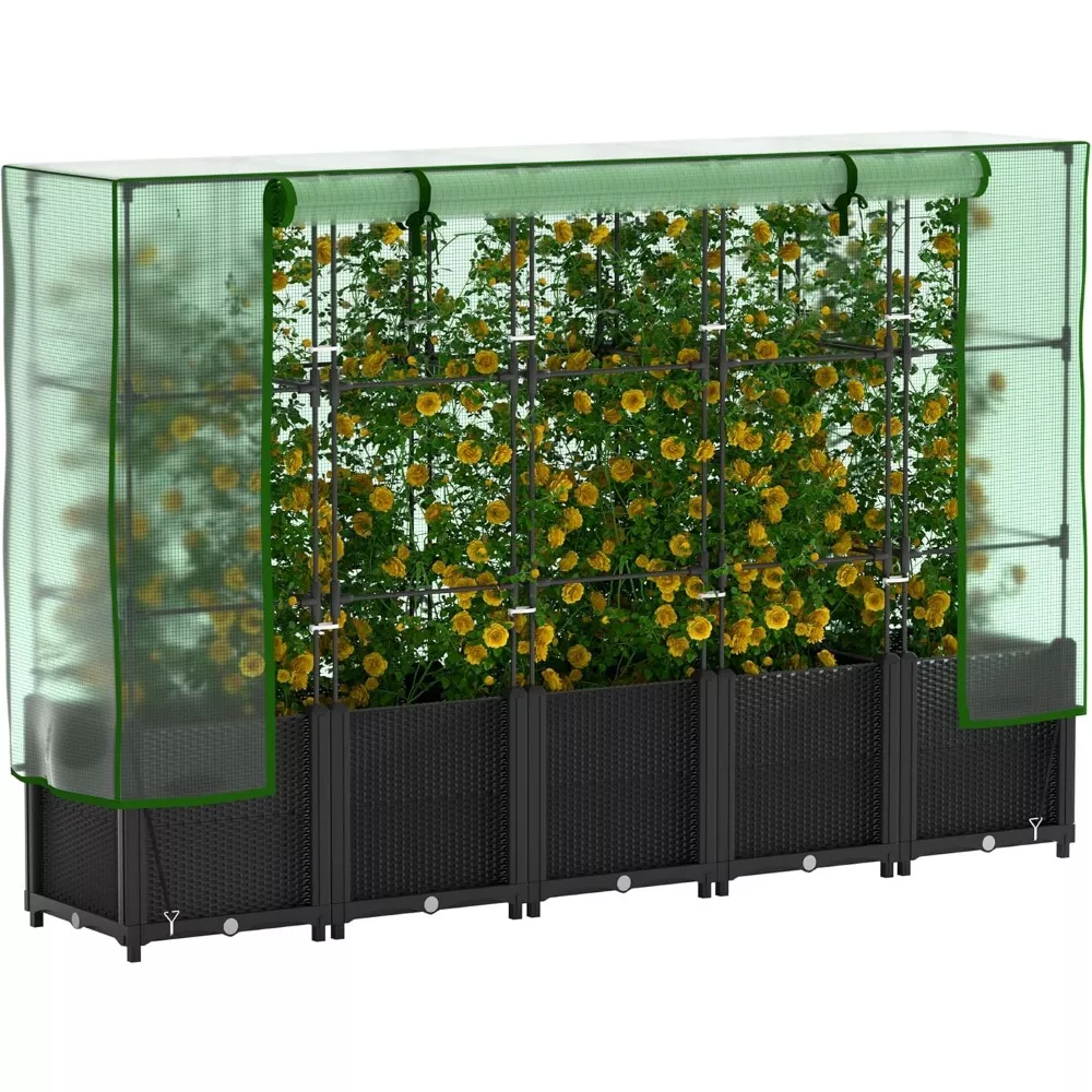 Assembly is tool-free and quick, and the modular design lets you expand your setup as your garden grows. It’s ideal for small backyards, balconies, decks, or even sunrooms. The built-in trellis offers strong vertical support, turning climbing plants into lush, space-saving displays of greenery and color.