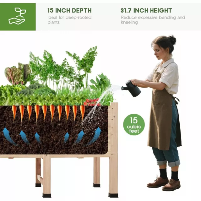 Take your gardening to the next level with this spacious 8×4 ft Wooden Raised Garden Bed with Legs. Designed with deep-rooted plants in mind, this elevated planter box offers a generous 15-inch depth and 20 cubic feet of soil capacity—perfect for growing everything from carrots and corn to pumpkins and vibrant flower beds. Whether you’re a passionate home gardener or just starting out, this sturdy raised bed brings convenience, comfort, and productivity right to your patio or backyard.