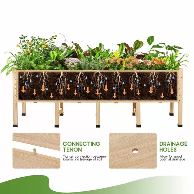 Crafted from quality wood with reinforced dovetail joints and a slot-and-peg corner system, this raised garden bed is built to last. An added center support leg ensures enhanced stability, keeping your plants secure through every season. The elevated design isn’t just attractive—it’s functional too. By raising your soil off the ground, this planter promotes better drainage, healthier root systems, and fewer weeds.