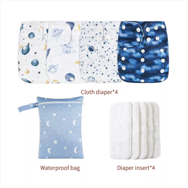 This practical yet adorable set includes 9 waterproof cloth diapers, absorbent inserts, and a convenient wet bag for storage. Perfect for day or night use, at home or on outings, these diapers keep leaks under control while offering breathable comfort. The portable storage bag lets you pack used or clean diapers without mess, making this the ultimate diapering solution for busy parents.