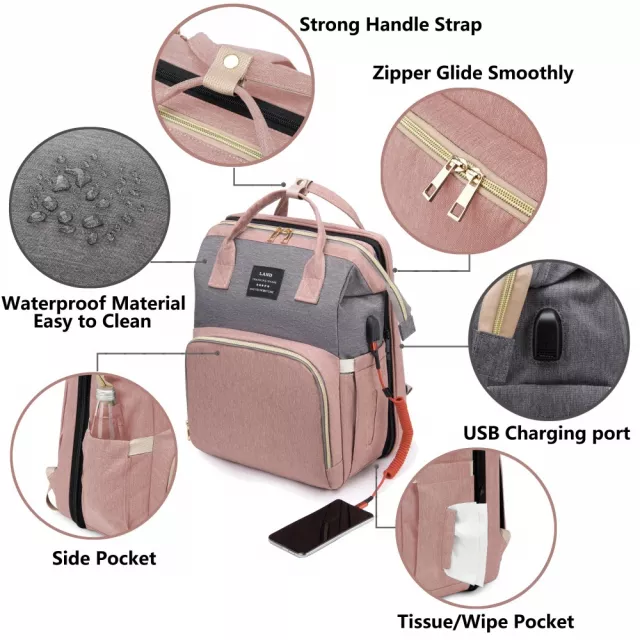 Unlike traditional diaper bags, this backpack gives you room to organize everything — and we mean everything. No more digging through messy totes. Every pocket has a purpose, and the fold-out bed ensures your baby can rest comfortably while you’re away from home.