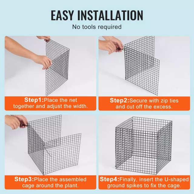 These garden protectors are built to perform. The open cube structure allows ample space for branching, airflow, and sunlight—making pruning and harvesting easier. Installation is simple with black zip ties and U-shaped ground stakes included. And when the season ends, disassemble the cages in minutes for easy, compact storage.