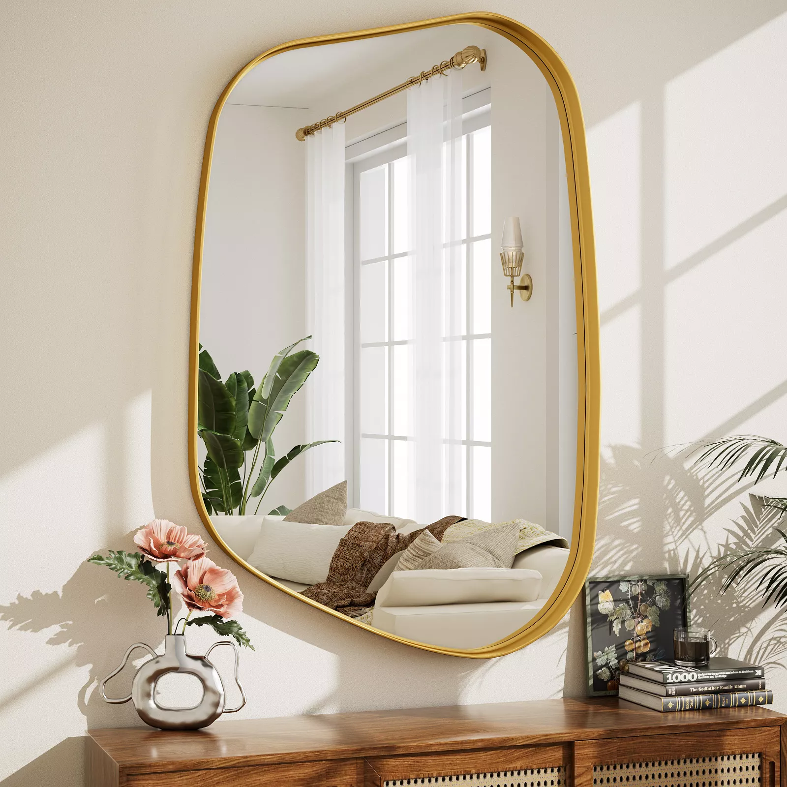 This mirror isn’t just for checking your reflection—it’s a piece of art. The asymmetrical shape adds unexpected interest, transforming everyday decor into something truly distinctive. Designed with versatility in mind, it suits both large and small spaces, and looks equally stunning in a bathroom, hallway, living room, or over a cabinet. It’s a fresh take on the classic mirror, with modern edges and a sculptural look that turns walls into style statements.