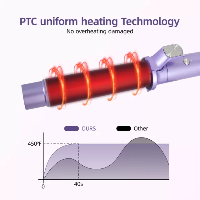 With advanced PTC heating technology, this curling wand heats up in just 40 seconds, delivering even heat up to 450°F. The ceramic-coated barrel helps reduce frizz and keeps your hair looking smooth, shiny, and healthy. It’s perfect for those busy mornings when you need beautiful curls in a flash, without the risk of heat damage. The anti-scald cooling tip ensures safe handling while styling.