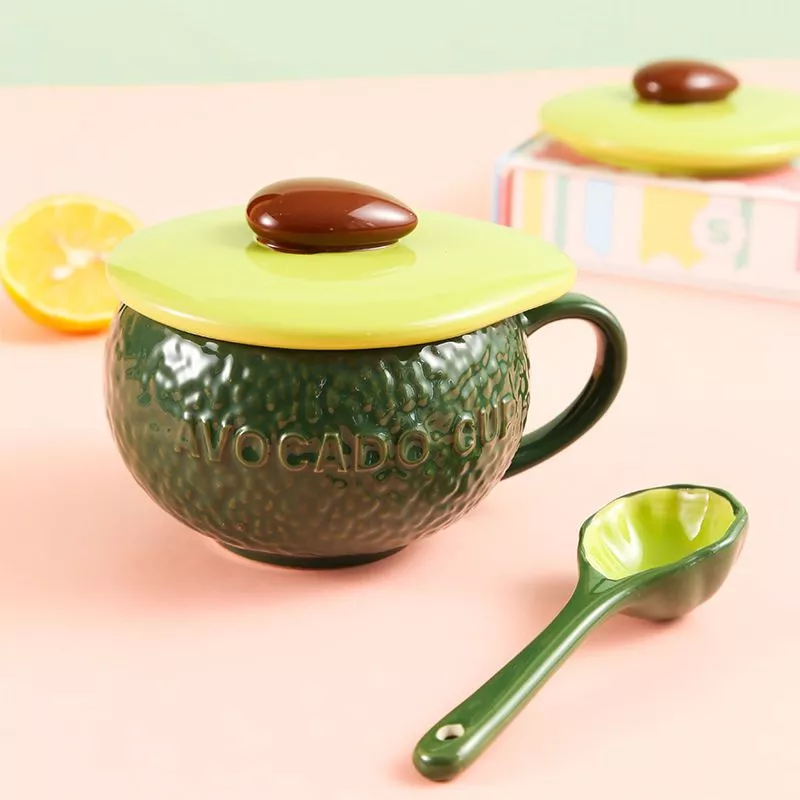Designed to be both functional and decorative, this creative mug features a whimsical avocado shape with a handgrip handle and a matching ceramic lid. Its smooth porcelain finish and hand-painted details create a look that’s both modern and irresistibly cute—ideal for brightening up any kitchen shelf, desk, or breakfast nook. Plus, it’s eco-friendly, durable, and made for everyday use.