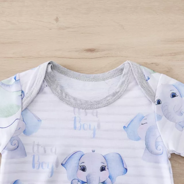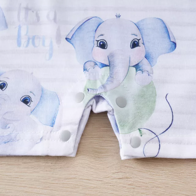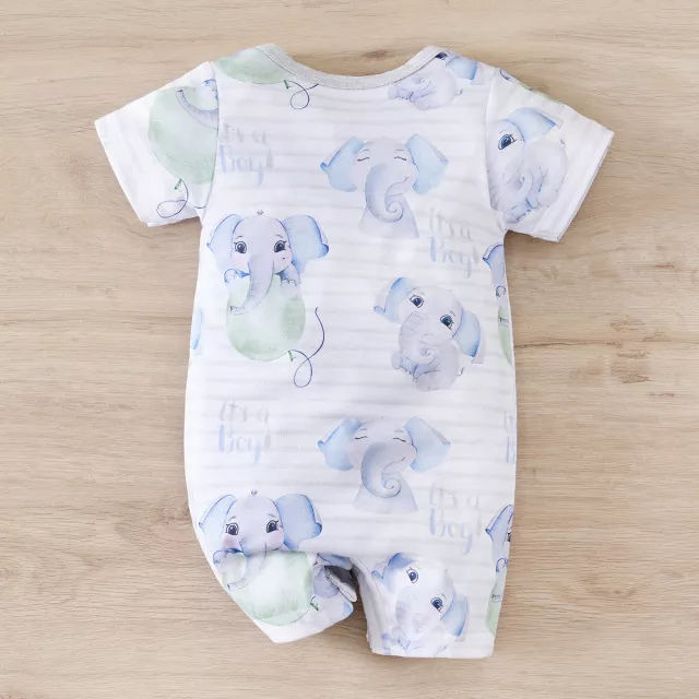 Dress your newborn in pure cuteness with this charming elephant and balloon print romper. Designed for baby boys aged 0 to 12 months, this short-sleeved onesie combines playful design with everyday comfort. Whether it’s a lazy day at home, a family gathering, or your baby’s first trip to the beach, this romper adds an extra dose of style to every moment. Made from a soft and stretchy blend of 97% polyester and 3% spandex, it moves with your baby and feels gentle against their delicate skin.