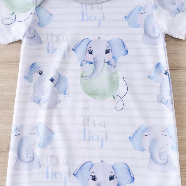What sets this romper apart is its thoughtful blend of practicality and adorable design. The sweet elephant and balloon illustration adds a whimsical charm, while the soft, stretchable fabric ensures that your baby stays comfortable no matter the activity. Covered button closures make dressing hassle-free, and the quality material keeps its shape and softness wash after wash.