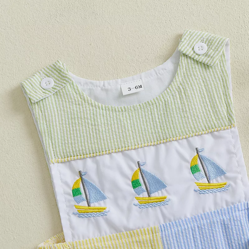 What makes this romper special? It’s the unique mix of comfort, style, and thoughtful details like the adorable sailboat embroidery and classic stripes. More than just an outfit, it’s a summer essential your little one will love wearing again and again.
