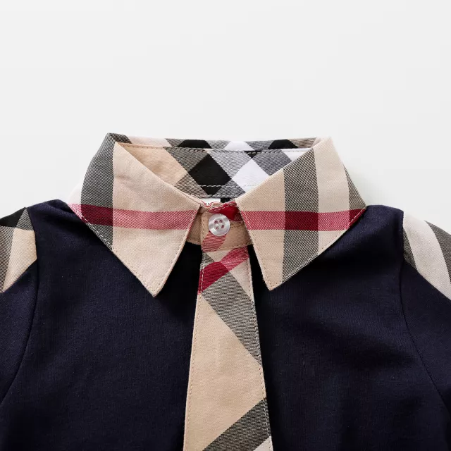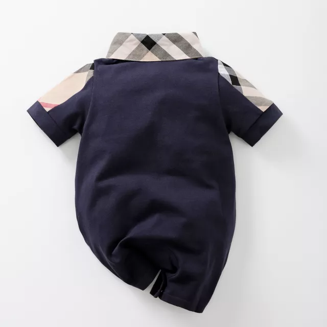 Featuring a classic turn-down collar and short sleeves, this romper mimics a tuxedo-style look that’s equal parts playful and polished. The plaid pattern adds a touch of sophistication, while the covered button closure ensures easy dressing and diaper changes. With its regular fit and high-quality weave, this outfit is made to last through all the wiggles, crawls, and cuddles.