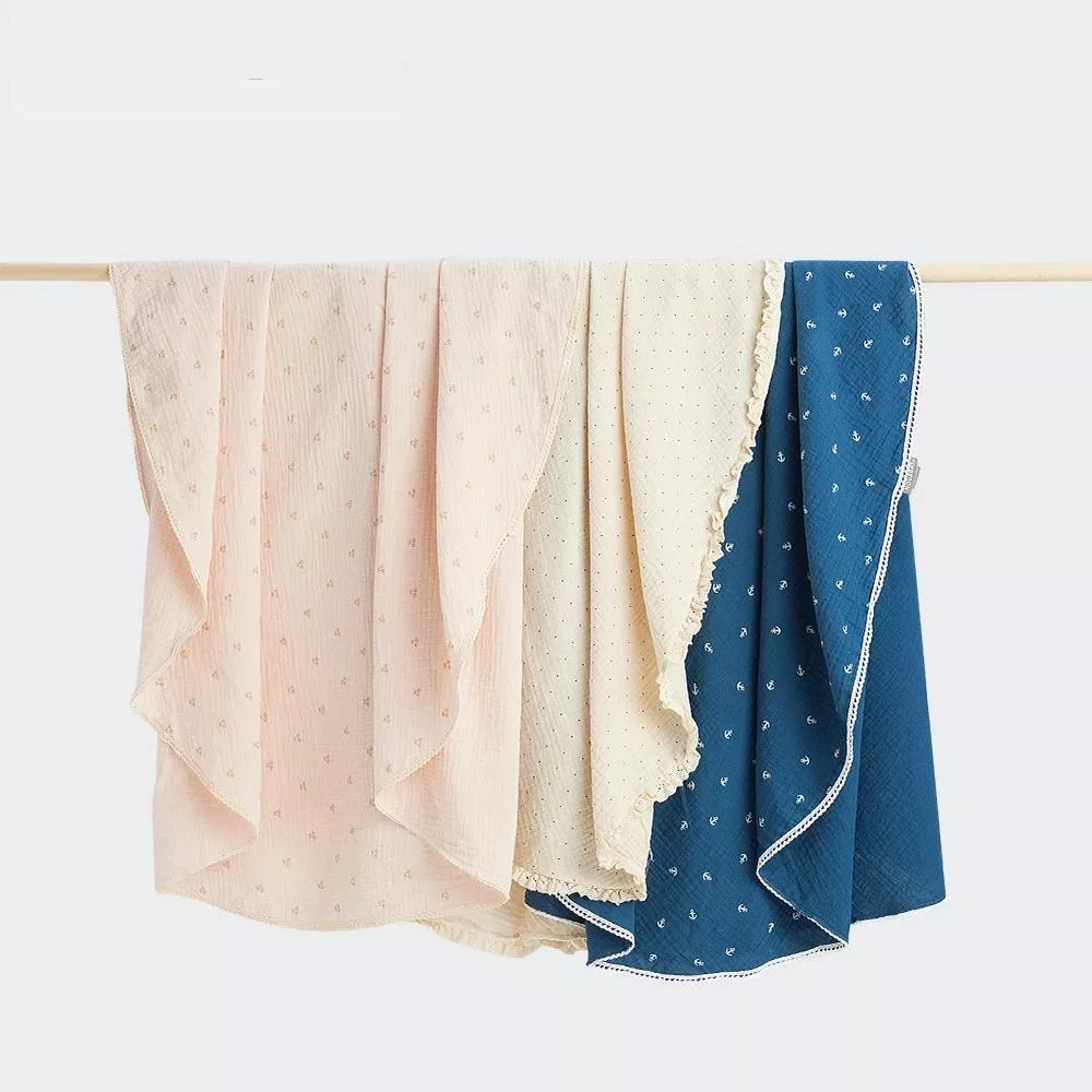 As an expecting mom who loves surprises, finding versatile unisex items can be tough. This blanket though - 100% cotton, breathable yet warm enough for outdoor naps, with that elegant touch of flowers on the border - just perfect!