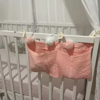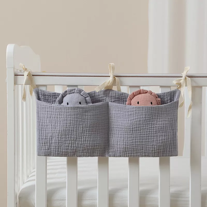 Baby Crib Hanging Organizer – Cotton Storage Bag for Diapers, Toys & Essentials