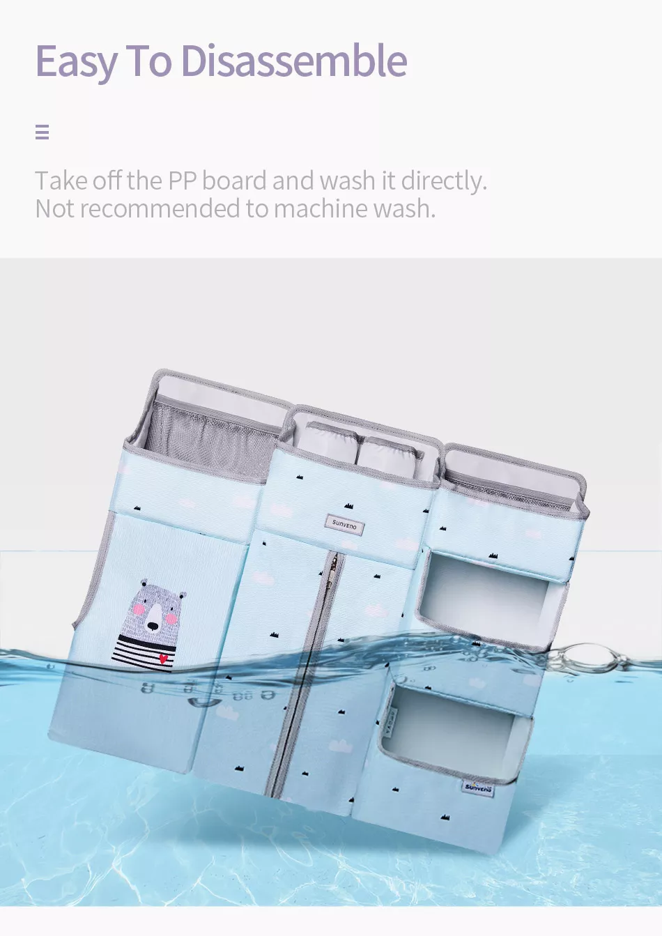 Crafted with a soft yet durable polyester and cotton blend, and filled with lightweight PVC, this organizer holds its shape while staying gentle to the touch. Whether you’re getting ready for late-night diaper changes or keeping things tidy during the day, this organizer brings ease and order to your baby care routine.