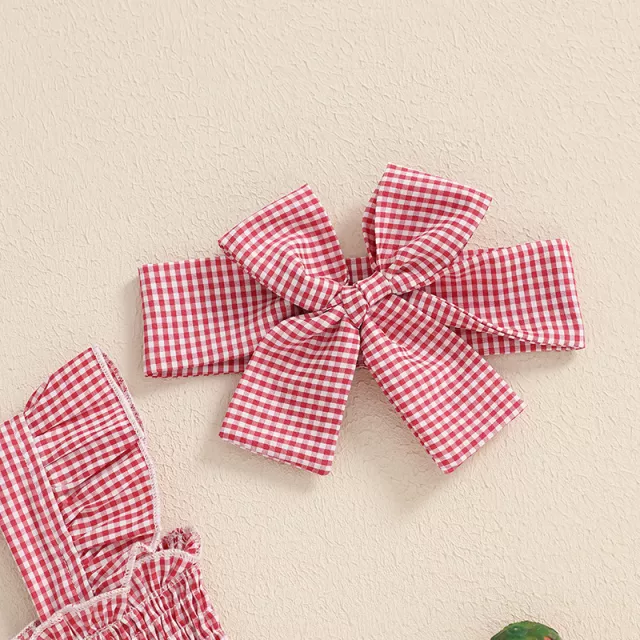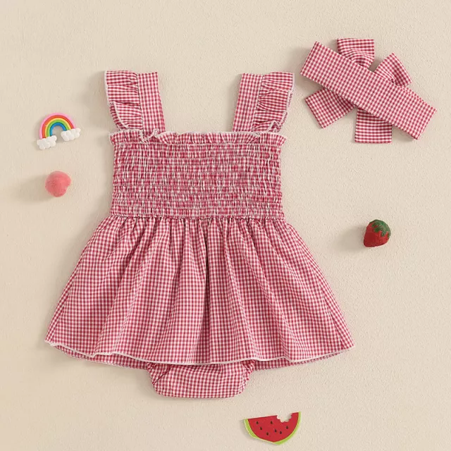 I bought this adorable 2-piece set for my little girl and I have to say, it's even cuter in person! The strawberry smocking on the plaid romper dress is simply delightful. It comes with a matching headband too which completes her look perfectly. But what impresses me more is its fabric composition—95% polyester and 5% elastane—it feels incredibly soft against her skin while also being breathable enough for hot summer days.