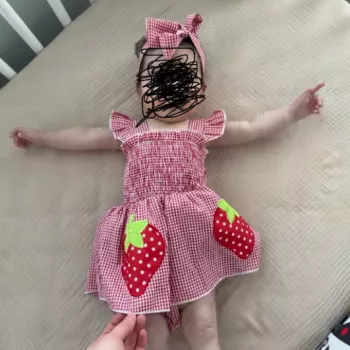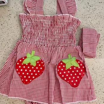 Super cute design! Love that there’s a matching headband included too – adds an extra charm And oh boy, isn’t that strawberry smocking simply irresistible?