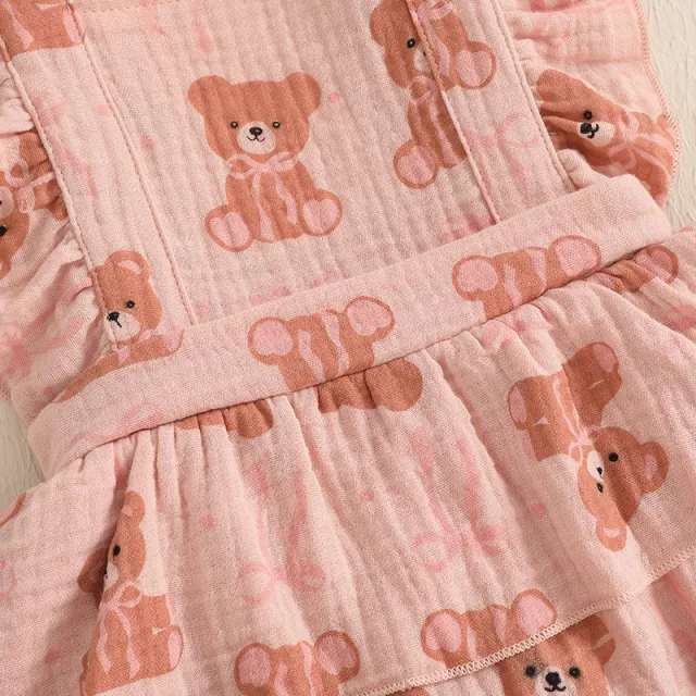 This romper dress stands out with its unique bear print and thoughtful tiered design. While it looks like a dress, it offers the comfort and coverage of a romper—giving you the best of both worlds. Whether you’re capturing milestones or just cuddling up, it’s a delightful outfit that blends function with fashion. Soft to the touch and built for movement, it ensures your little girl stays cute and comfy all day long.