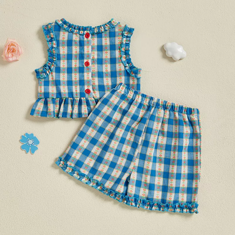 Absolutely smitten with this darling little outfit! The ruffle tank top is just too adorable, and the shorts are super comfy for my active toddler. Plus, the floral and plaid patterns? So fresh and perfect for summer!