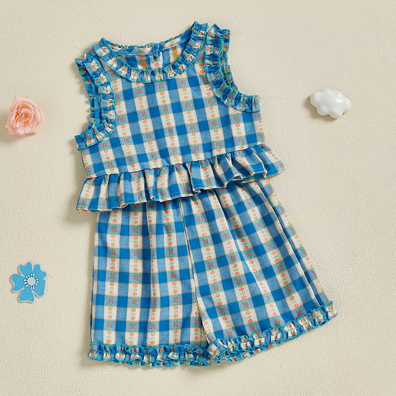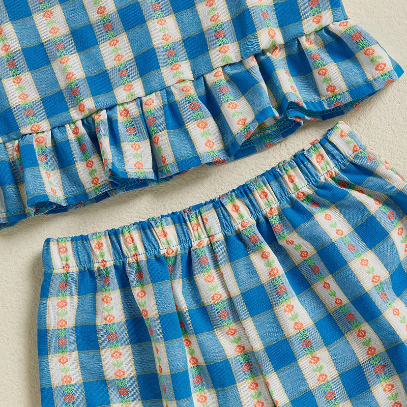 Dress your little sweetheart in this charming Baby Girl Summer Outfit Set, perfect for sunny days, family outings, or playtime fun. This 2-piece set pairs a cute ruffle tank top with comfy elastic waist shorts, creating a look that’s both playful and practical. The combination of floral and plaid patterns brings a fresh, cheerful vibe that’s just right for summer adventures.