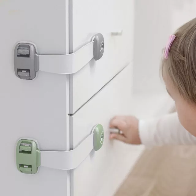Crafted from durable, high-quality plastic (ABS+PE+POM), each lock measures approximately 8.5 inches long, 2.1 inches wide, and 0.6 inches thick, offering a secure hold without damaging your furniture. The sleek, modern design in soft green and gray tones blends seamlessly into your home decor while quietly doing its job—keeping your child safe.