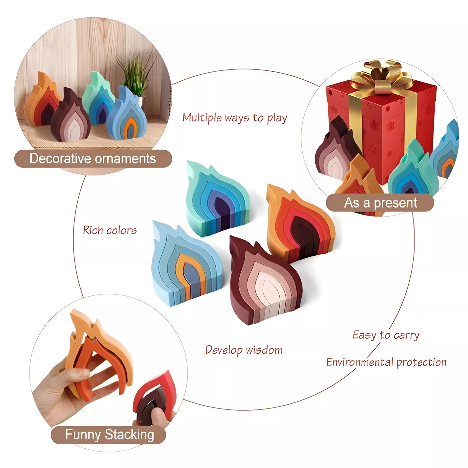 This stacking toy is best used during your child’s early developmental stages—from around 6 months to 3 years old. It’s a great activity for tummy time, floor play, or quiet solo moments. Keep it handy during teething periods for soothing relief or during travel for on-the-go fun. Whether at home or on the move, it’s always ready for imaginative, skill-building play.