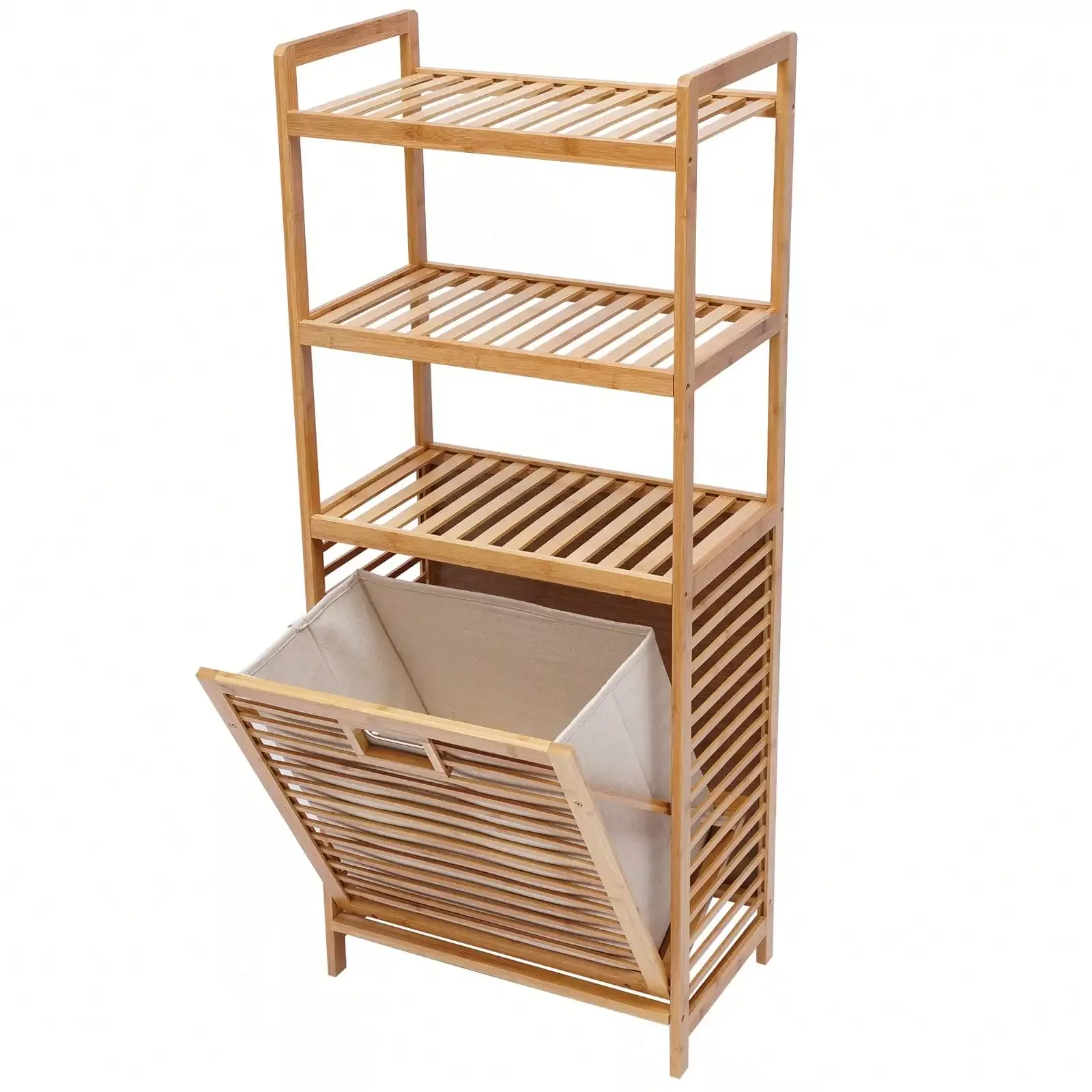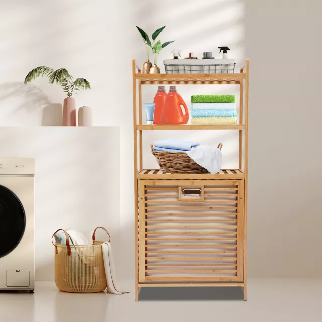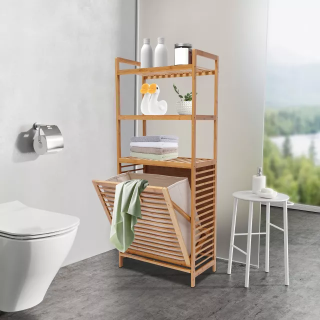Bring warm, rustic charm to your home with this versatile bamboo storage rack that combines functionality with natural beauty. The three spacious shelves and removable fabric baskets create the perfect storage solution for laundry, linens, toys, or decor. Whether placed in your bathroom, bedroom, or living room, it keeps essentials organized while adding organic texture to your space.