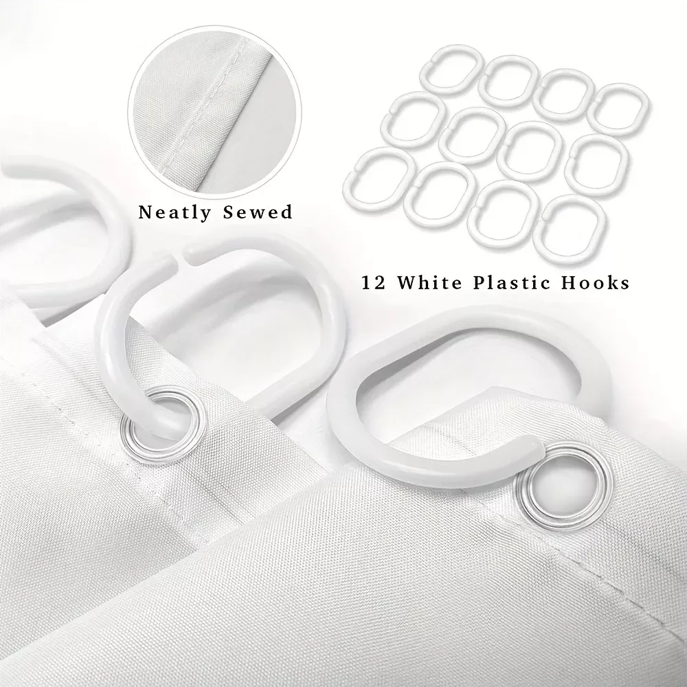 This set includes a 71 x 71 inch shower curtain made from high-quality 100% polyester — durable, water-resistant, and soft to the touch. It comes with 12 easy-to-install plastic hooks, so you can hang it up in minutes without needing any special tools. The set also includes three matching bathroom floor mats in various sizes for comfort, safety, and coordinated style.