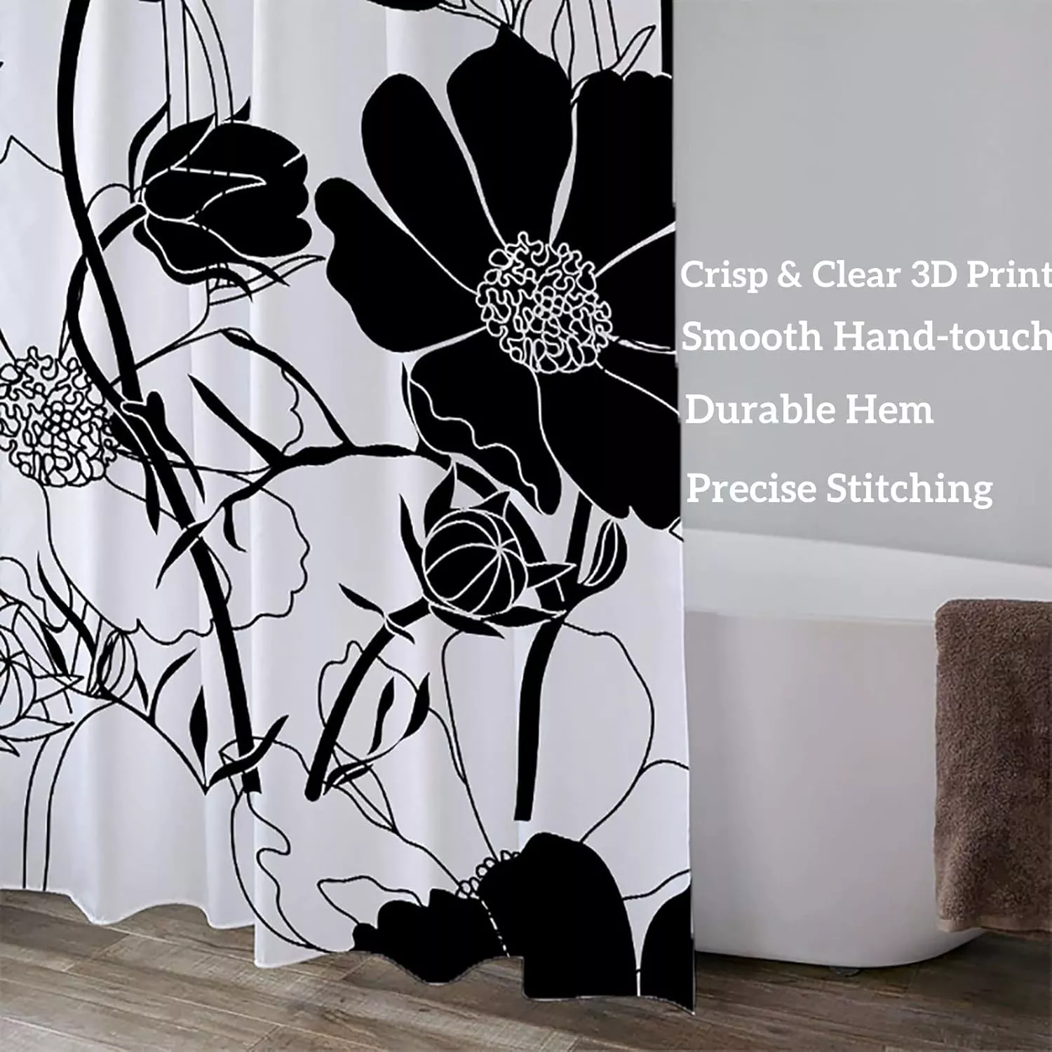 Transform your bathroom into a stylish and serene space with this stunning black and white floral waterproof shower curtain. Designed to add a modern yet classic touch, this curtain combines artistic beauty with practical durability. The delicate floral pattern offers a sophisticated contrast in monochrome tones, making it the perfect centerpiece for any bathroom décor—whether minimalist, vintage, or contemporary.