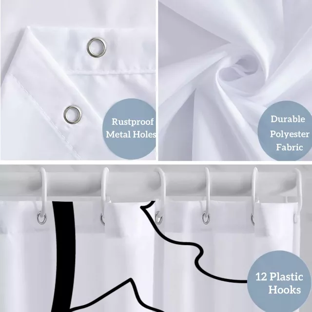 Crafted from premium polyester fabric, this shower curtain measures 72×72 inches and includes 12 easy-to-install hooks, providing full coverage and a secure fit for standard bathtubs and showers. Its water-repellent surface and quick-drying technology ensure a clean, dry, and inviting space every time you step into your shower.