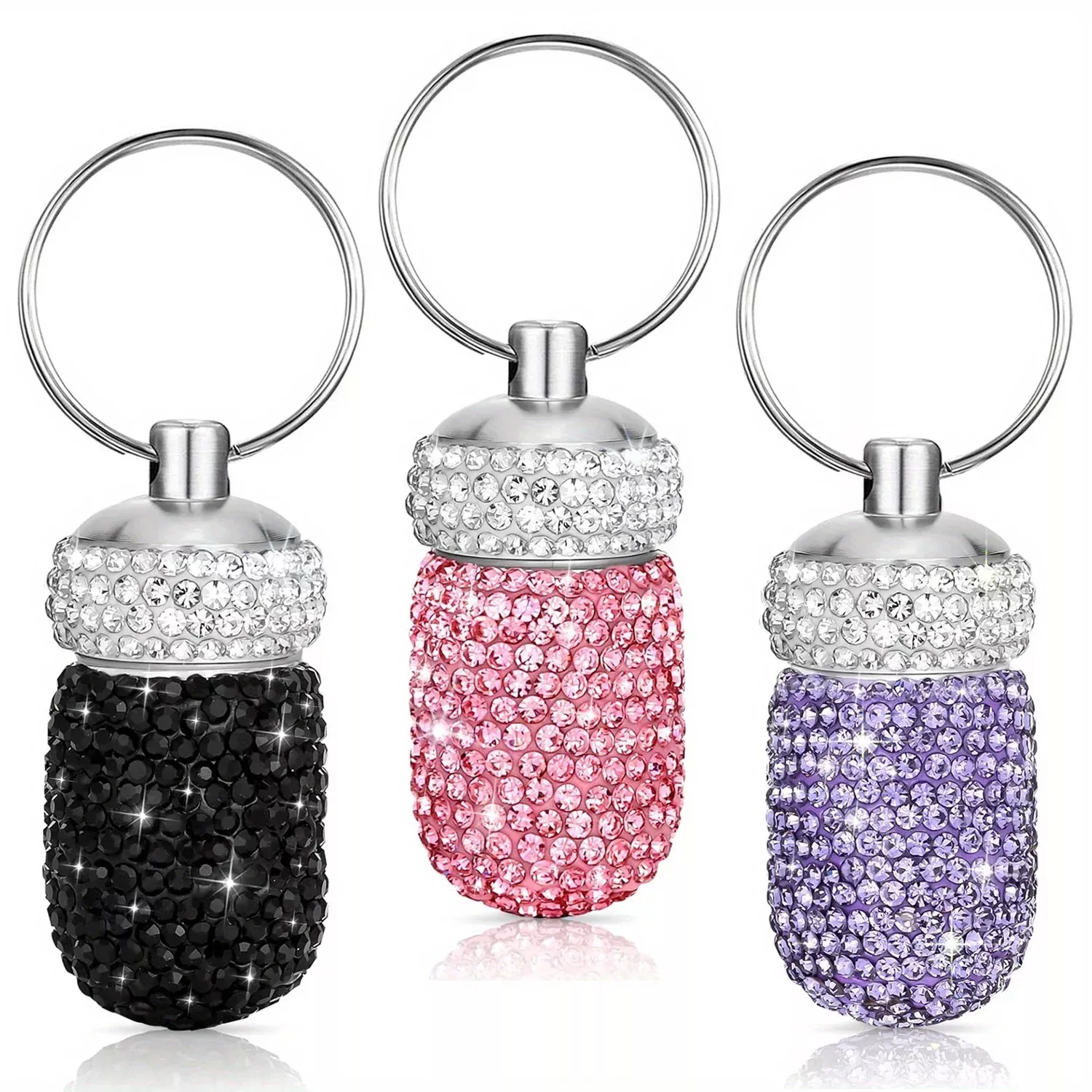 Stay prepared and look fabulous while doing it! This bling rhinestone pill container case brings together practicality and sparkle, giving you a compact way to carry your medicine, vitamins, or supplements on the go. Designed with a dazzling rhinestone exterior, this waterproof pill holder is more than just a medical accessory – it’s a chic statement piece for your keychain, purse, or travel kit.