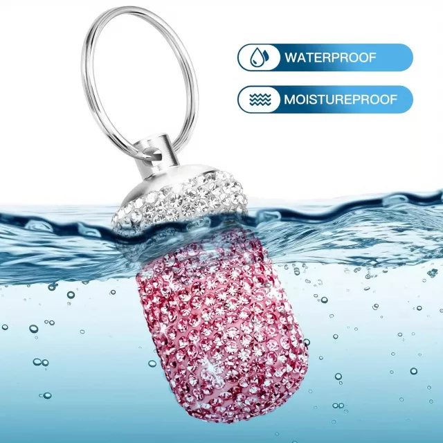 Absolutely love this! The rhinestones give it such a glamorous touch, and the waterproof casing is perfect for my adventures. It's so handy to have my pills with me all the time, right there on my keychain. Plus, I don't worry about them getting wet or damaged anymore.