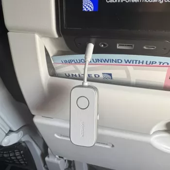 What an incredible device! It transmits crystal clear audio from any airplane entertainment system directly to your Bluetooth headphones. Truly a travel essential that I won't leave home without!