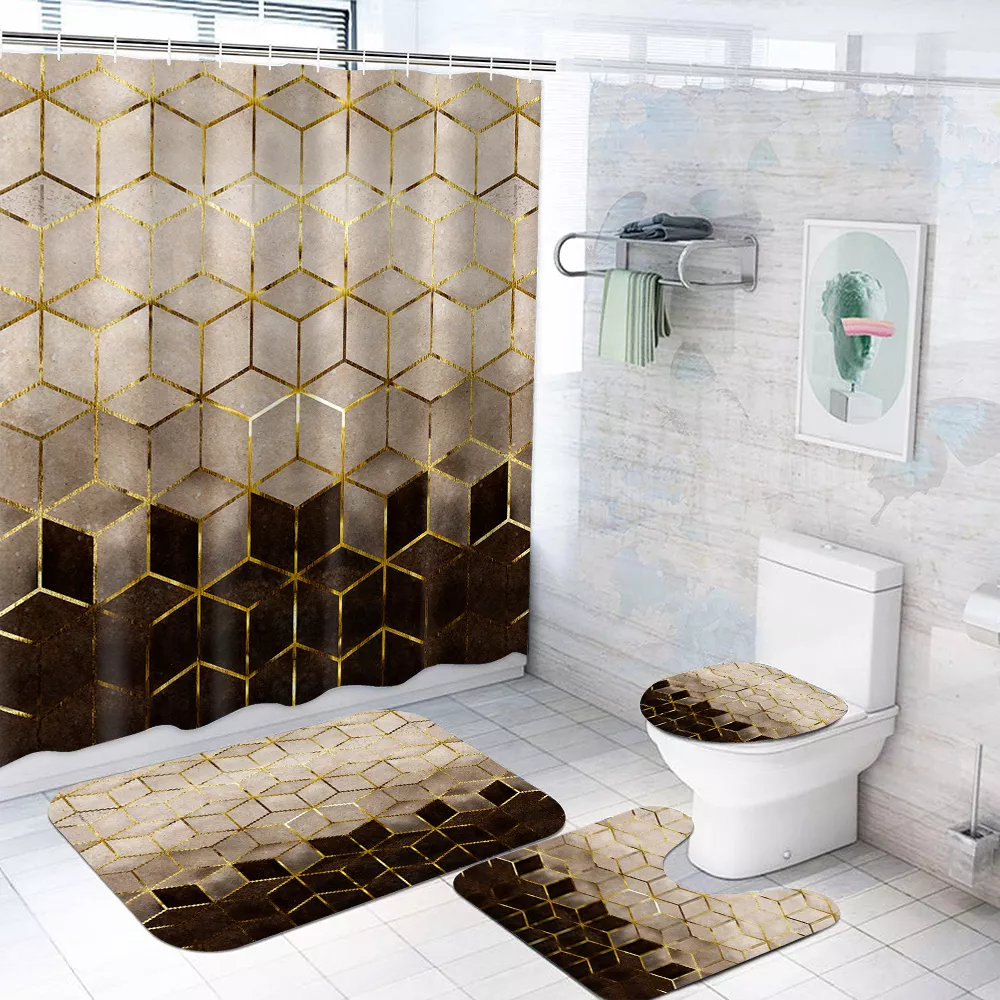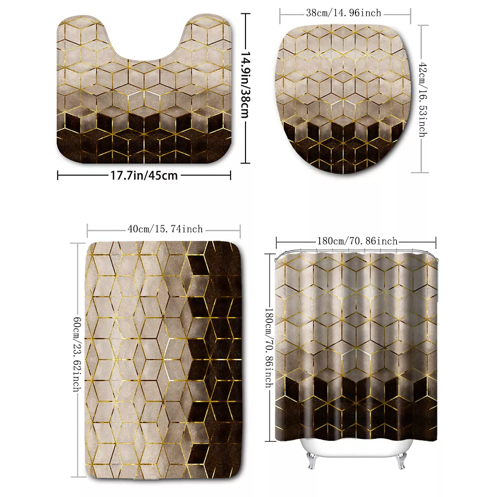 Give your bathroom a modern makeover with this Brown Honeycomb Gradient Plaid Shower Curtain and Floor Mat 4-Piece Set. Designed to bring warmth, personality, and elegance to your space, this set blends fashion and function beautifully. The eye-catching honeycomb plaid pattern in earthy brown gradients adds a cozy yet stylish vibe, making your bathroom feel more like a spa retreat.