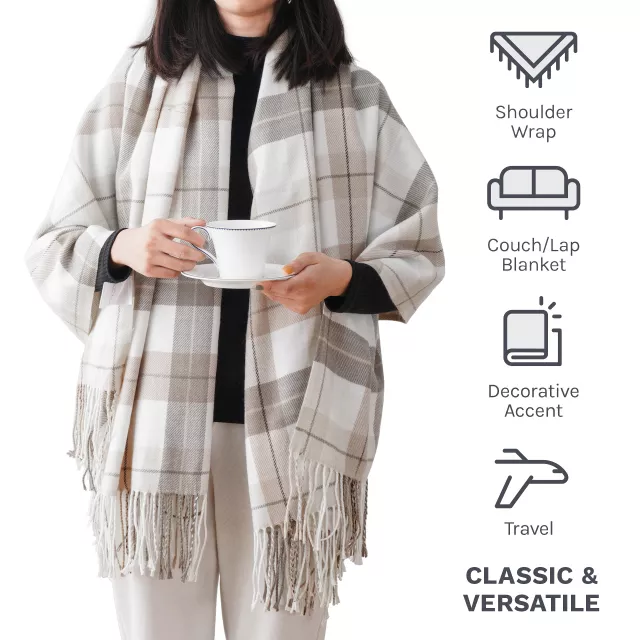 Crafted from 100% skin-friendly acrylic, this lightweight throw offers a luxurious cashmere-like feel without the weight. It’s breathable, soft to the touch, and perfectly sized to double as a wearable shawl or wrap. Measuring just right for daily use, it won’t overwhelm your space — it enhances it. Stylish tassels at the edges add a charming, layered look to match any modern, rustic, or farmhouse decor.