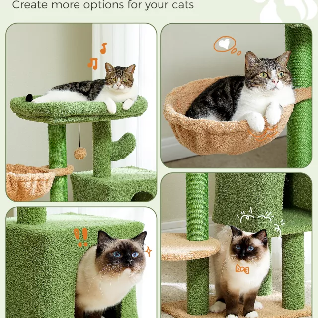 Cactus Cat Tree with Hammock, Scratching Posts & Padded Perch