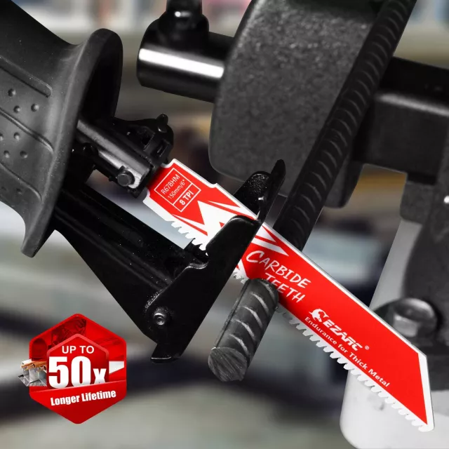 Made with advanced carbide technology, each blade is built to last up to 50x longer than standard bi-metal blades. The 8 teeth per inch (TPI) configuration provides aggressive cutting action while maintaining smooth operation—even through high-alloy steels, stainless steel, and car frames. Whether you choose the 6-inch or 9-inch version, these blades are built to handle heavy-duty metalwork with ease.